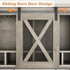 - Sliding Barn Mesh Door: Measures 46.5" L x 39.3" H x 15.7" W with a 6-glass stemware holder and 9 individual wine grids, concealing extra storage and open shelves for decor or appliances.