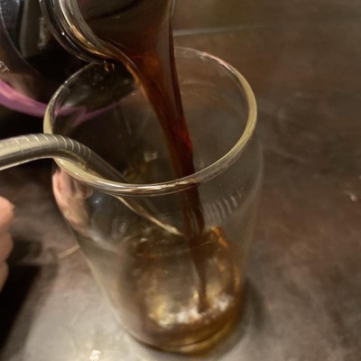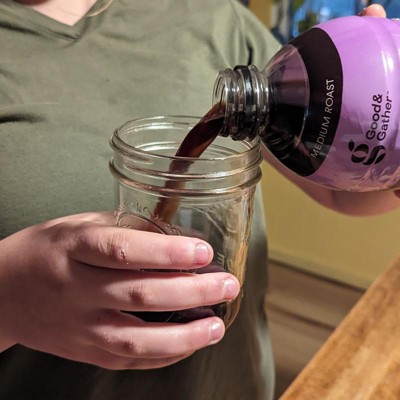 Simplify your morning coffee routine with this 48-fluid Ounce Black Sweetened Cold Brew Coffee from Good & Gather™. This 100% Fair Trade certified smooth black coffee is cold-brewed from Arabica beans. Finished with a touch of sweetness, you can enjoy it as is or finish it off with your favorite syrups and creamers.Ways to Enjoy Delicious with oat milk, almond milk or coconut milk. Never water down your coffee again; pour could brew into ice cube trays and freeze. Add a splash of lemonade and club soda to cold brew for a refreshing caffeinated drink.