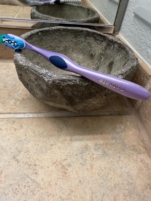 - Purple floss-tip* bristles reach deep between teeth (*this adult toothbrush does not replace flossing)