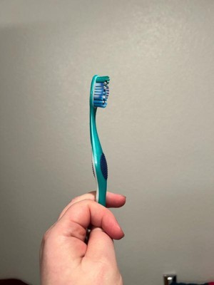 [This review was collected as part of a promotion.] I was a big fan of these toothbrushes that influenster sent over! There were lots of fun colors. I found the handle to be comfortable to hold and the bristles were just the right amount of softness while still doing a good job scrubbing in those hard to reach places!