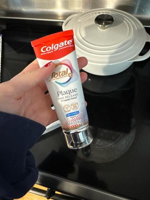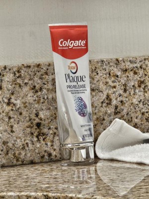 - Includes one (1) 3.0 oz tube of Colgate Total Plaque Pro Release Whitening Toothpaste, Mint