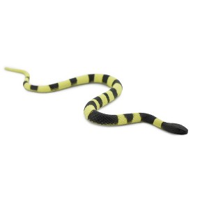 Banded Krait This engaging, realistic-looking plastic banded krait miniature is made of somewhat flexible Rubber with good quality. This replica has detailed skin and an attractive realistic pose. This banded krait replica makes for a nice pet, fits into a shoebox diorama, or serves as a great collectible. It is 6 inches long from nose to tail posed exactly as it appears in the photo. A unique replica of a exotic species! Check out our other snake toys and gifts. About Banded Kraits The banded krait (Bungarus fasciatus) is a venomous snake found throughout India and North and Southeast Asia. Easily identified by its distinctive black and yellow stripes, banded kraits are amongst the largest of kraits. The largest banded krait on record had a length of almost seven feet. Banded kraits are primarily nocturnal, and are shy and fearful of humans. During the day, banded kraits tend to "hole-up", and are lethargic even when antagonized. The bite of a banded krait injects a neurotoxin that is typically not fatal to humans unless a large quantity is injected and the bite is ignored. There are few documented cases of humans being bitten, much less killed, by banded kraits. This low mortality rate is due in large part to the rare contact with humans, but also due to the banded krait's tendency to inject very little venom when biting defensively. Thanks for visiting Collectible Wildlife Gifts, the leading provider of high-quality, lifelike animal Designs and gifts! We work hard to ensure we have a diverse range of products. Each product is inspected for their quality craftsmanship. Whether you're searching for a great gift or seeking educational designs for displays, we ™ve got you covered. At Collectible Wildlife Gifts, our products appeal to a wide range of customers, including family, friends, and educators. Our products are trusted and used by professional organizations as well including aquariums, zoos, and movie studios. Our extensive line of products boasts everything from plush sharks to educational animal growth cycles. Our products bring joy to recipients, and serve as valuable educational resources, sparking curiosity and fostering learning. Discover the wonders of the natural world with Collectible Wildlife Gifts. Browse our collection today!