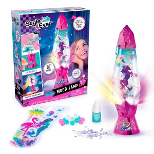 Style 4 Ever Color-Changing DIY Lava Lamp Kit Now you can create your very own lava lamp to add some cosmic color to your room! This set includes everything you need simply decorate the lamp however you please with the confetti, glitter, beads, decorative inserts, colorant and stickers. Then watch as it illuminates with color-changing LED light, glittery bubbles, and swirling beads. Includes 1 battery-powered lava lamp base with LED light, 1 clear lamp bottle, stickers, decorative inserts, glitter, confetti, beads, 1 colorant bottle and instructions. Req. 3 "AA" batteries (sold separately). Plastic. Approx. 12 1/4"L x 9 3/4"W x 3"H. Ages 8+.Material TypeABS(plastic),Paper