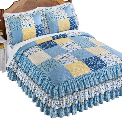 This Lovely Patchwork Style Quilted Bedspread Has A Lovely Collection Of Floral Patches On The Top In Shades Of Blue And White With Three Tiers Of Ruffles In Coordinating Patterns Along The Sides. Matching Shams Sold Separately. Machine Wash. Polyester; Imported. Choose: Full (89" X 59"), Queen (97" X 60") Or King (97" X 78").