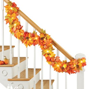 Collections Etc LED Lighted Fall Leaf Garland with Timer