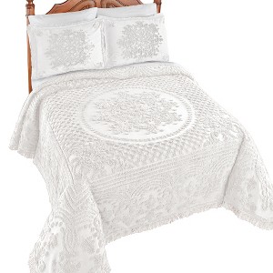 Soft And Luxurious, This Beautiful Chenille Bedspread Features An Intricate Texture And A Gorgeous Design. The Lovely Medallion Pattern Is Featured In The Center, With A Detailed Trellis Pattern Around It. With Dimensional Details And A Lovely Fringe Border, It Instantly Adds A Touch Of Elegance To Your Bedroom. Shams Sold Separately. Machine Wash. Cotton; Imported. Choose: Blue, Grey Or White. Available In: Twin (110" X 81"), Full (110" X 96"), Queen (120" X 102") Or King (120" X 120").