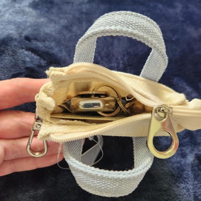 [This review was collected as part of a promotion.] This mini tote bag keychain is absolutely adorable! It's the perfect little mini tote. It's about the size of my palm. It functions with a zipper compartment that you can keep a little emergency money in or your fav tube of lipstick. It has a nice thick secure clasp to attach it to your bag. It looks adorable clipped to my larger tote. Super cute, fun, whimsical addition to my bag. Love it. I received an incentive to write this review.