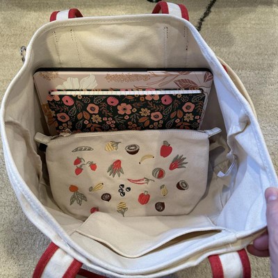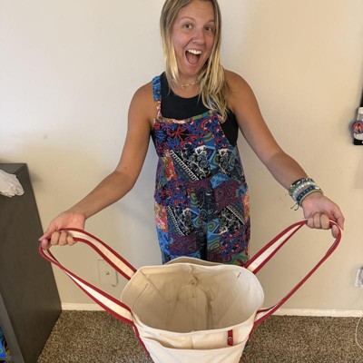 [This review was collected as part of a promotion.] Some people have a shoe obsession, mine is tote bags! As soon as I seen this canvas bag that looks like a high end brand dupe from Univeral Threads for half the price, I had to have it. It’s much roomer than I expected. It easily fit my iPad, journal and makeup bag with plenty of room left. There are pockets on both the inside and out. This would be a perfect commuter bag for work or school but note, there is no closure so it’s an open top bag. I also liked the canvas is soft, not stiff like some others. The red is very vibrant and contrasts great with the ecru. I’m five foot seven and the bag is a perfect size for my frame. I received an incentive to write this review.