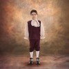 Includes reddish brown vest with attached jabot, sleeves, and matching pants
