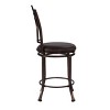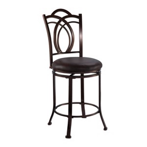 Introducing the Colton 30" Transitional Bronze Metal and Brown Faux Leather Padded Seat Counter Stool by Linon – a perfect fusion of transitional allure and traditional charm. Impeccably crafted for both fashion and comfort, this metal stool boasts a decorative back, gracefully flared legs, and a swivel seat that invites you to unwind in style. The rich coffee brown finish adds a touch of warmth, seamlessly complementing any interior. Designed with a discerning eye for detail, the Colton counter stool is not just a piece of furniture; it's a statement of sophistication that transforms any space into a haven of timeless elegance.