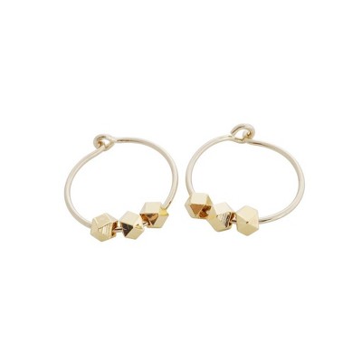 Minimalist, skinny hoops accented with a trio of faceted charms. Gorgeous worn solo or alongside your favorite earrings. These measure 16 mm tall.