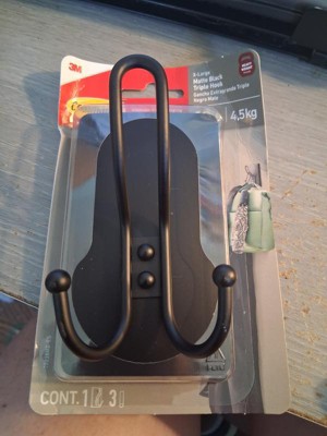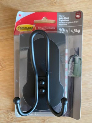 Command Extra Large Matte Black Triple Hook: Heavy Duty Adhesive Wreath Hanger, Plastic, 6.75" Height, 1 Pack