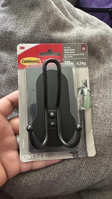 [This review was collected as part of a promotion.] The Command Large Matte Black Hook has been a fantastic solution for organizing my space. It holds my purse perfectly without any signs of slipping or coming loose, thanks to its strong adhesive. The matte black finish adds a sleek, modern touch that blends well with my decor, unlike some of the bulkier plastic hooks. It's a reliable and stylish way to keep my purse off the floor and easily accessible, and I love that it won't damage the wall when I decide to move it. Highly recommend it for anyone needing a durable and stylish hanging solution.