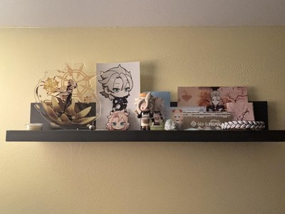This shelf is so nice! Rental friendly so won’t leave holes in the wall or peel the paint. We bought them for our kids to display their little toys and Legos in their room. Great buy!