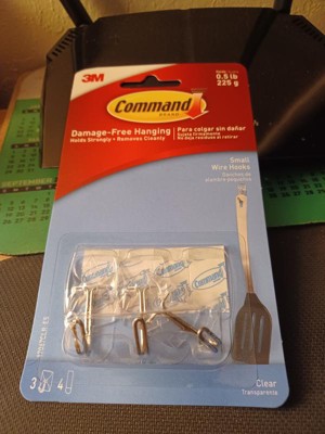 [This review was collected as part of a promotion.] Command clear small wire hooks are such a great product. I was able to hang my dish brush up near the sink without having to make any holes in the wall. They stick really good and can hold up to a half pound. I like how easy they are to remove without any damage to the walls. It is so good to be able to hang whatever I want wherever I want without any damage to the walls.