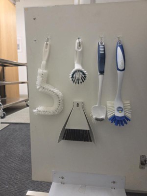 [This review was collected as part of a promotion.] My kitchen scrub brushes were all in a box under my sink. What a mess! I used these hooks on the inside of the cabinet door and now they are perfectly organized, stay neat, and keep dry. Great solution and no more wet plastic box with wet scrub brushes.