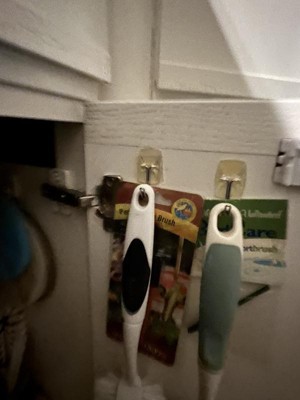 [This review was collected as part of a promotion.] My kitchen scrub brushes were all in a box under my sink. What a mess! I used these hooks on the inside of the cabinet door and now they are perfectly organized, stay neat, and keep dry. Great solution and no more wet plastic box with wet scrub brushes.