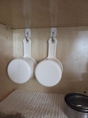 [This review was collected as part of a promotion.] These hooks are perfect for hanging things where you don't want to damage the surface, such as on cabinet doors. I used them to hold my scrub brushes so they are hidden from view when the door is closed. I can also remove them if needed later on without worrying about causing any damage to my cabinet doors.