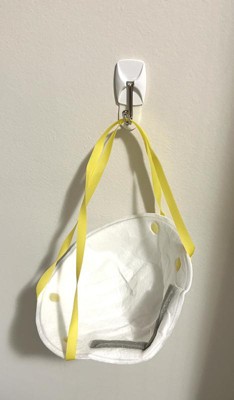 [This review was collected as part of a promotion.] I used one of these small wire hooks in my craft room to hang a pair of scissors. It was very easy to apply and the hook size is perfect for the scissors. And I can also use it for other items such as my brayer or a ruler that I have that has a hole in one end.