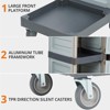 - 【Large front platform】The front platform of the grocery cart can accommodate a water squeezer or garbage can weighing about 80lbs, and the front platform has a fixed groove for the pulley to prevent the grocery cart from shaking and failing it is pushed.