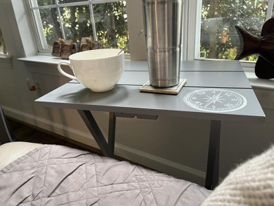 Linon 4pc 26.4" Compass Finish Plank Tray Tables with Storage Rack Dark Gray