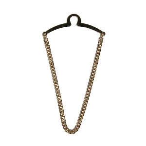 - Hooks to the button of your dress shirt, only the chain is visible when tie is inserted