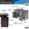 This Desk is a complete workstation offering an ample work surface and plenty of storage space. It features an accessory shelf atop a storage cabinet, a keyboard panel equipped with a safety stop, 2 drawers and a file cabinet. The CPU/Storage cabinet not only has a removable shelf that can be pleased up, down or completely removed but also has a large back opening for cables. The desktop has an 80lbs weight capacity, while the shelves can each hold up to 30lbs, and the drawers each have a 22lbs weight capacity. This elegant desk is made of heavy-duty MDF panels with a moisture resistant PVC laminate veneer atop scratch-resistant powder-coated steel supports.