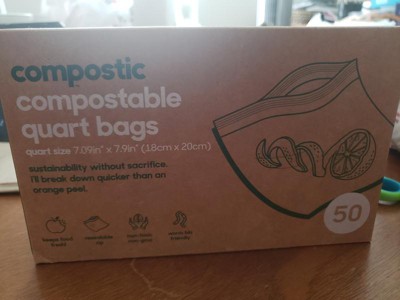 I really like these Compostic compostable quart size bags. I was impressed with the idea that I can actually throw these in with my compost worm farm instead of having to throw them in the trash. They are reusable which is great and they work really well for storing items in the fridge or on the go with our kids. Since these are non-toxic, I actually feel good about using them. I would definitely recommend these!