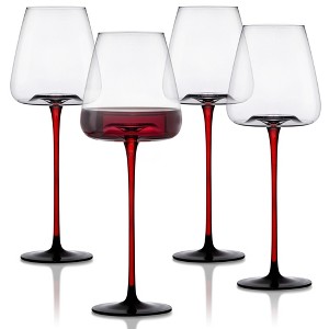 These contemporary Concave Champagne Glasses, featuring a vibrant red stem and sleek black bottom, are designed for modern homes and luxurious bar setups. With a 20oz capacity, this set of 2, or 4 is perfect for serving sparkling wine, prosecco, champagne, and stylish cocktails. The handcrafted quality ensures these glasses not only look stunning but also offer durability and clarity. The unique concave shape helps enhance the aroma and taste of your favorite drinks, making every sip an experience. Whether you're entertaining guests at home or adding to your luxury bar collection, these glasses are perfect for those who appreciate refined design and functionality.