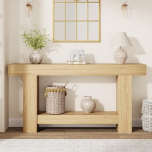 Long Console Table with Storage, Farmhouse Hallway Table with 2-Tier Storage Shelf