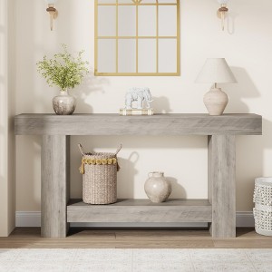 Long Console Table with Storage, Farmhouse Hallway Table with 2-Tier Storage Shelf