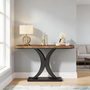 Modern Industrial Style - This console table showcases a chic rustic brown wood grain finish paired with a matte black base, making it a striking addition to any decor style.