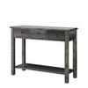 Add the perfect finishing touch to your entryway with the Teal Oak Console Table from Acme Furniture. This farmhouse-inspired console table features wooden construction in a distressed finish for a rustic look, and hints of faded teal add a subtle touch of color. The 32-inch height makes this table ideal for a variety of uses, and the three drawers and bottom shelf provide additional storage space you'll appreciate.