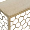 - •This fun and youthful console table features a unique open style, beehive-patterned design