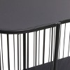 - •This stylishly tall console table features an oval-shaped cage exterior design with a table top and a 2-tier metal shelf