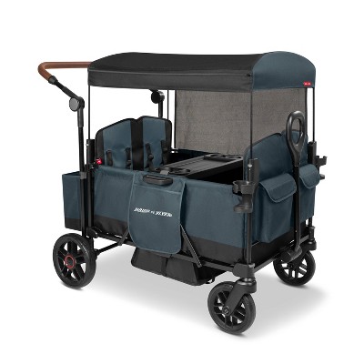 I love that our children (4 and 1) get to face each other while riding in this wagon. It's a breeze to pack and fold, and perfect for walks around the neighborhood, amusement parks, beach, and parks/playground. Love the shade for the beach and the little middle pull-out shelf to make it a flatbed for baby naps is amazing! Steers really well and super lightweight but sturdy. Plenty of cupholders and little pockets for storage.