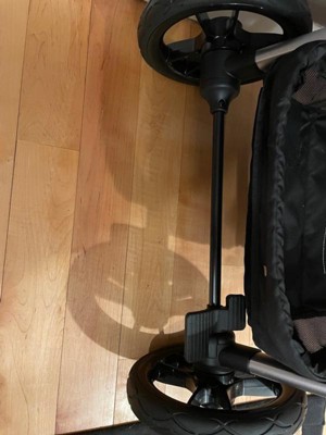 I really wanted to love this stroller, given how expensive it was for what you get. Even folded down, it's incredibly heavy (especially right after birth) and unwieldy to maneuver when folded down. We both just about had a conniption trying to figure out how to unfold it the first time, and the instructions were far from helpful. We also reached out to their customer service about it (and never heard back), but the front left wheel literally does not touch the ground. Not sure if something happened to the frame in transit or if we got a faulty model, but we only have three wheels rolling at any given time. It looks ridiculous. Pros: once it's up n' atem, it's really comfortable to use. The wheels are nice and big, and it handles our neighborhood's bumpy sidewalks with ease. It's also easy to back down off a curb. The storage in the bottom is spacious and easily accessible. We like the adjustable handle, and the compatibility with our Graco car seat is convenient.