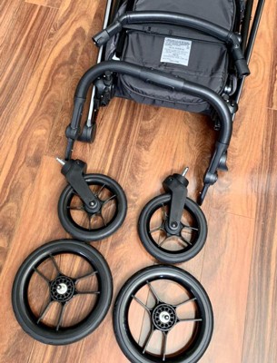 The wheels in front do not turn when you have the 2nd seat. It gets stuck so it's pointless of being a stroller for 2 if the wheels do not turn. Also to open it, it's very hard. The front tires need to be bigger.
