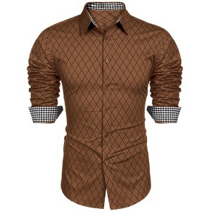 • Mens long sleeve dress shirts, designed in slim fit and diamond pattern, featuring with contrast plaid collar and cuffs, button down closure, adjustable cuffs. Make you sharp and attractive.