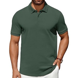 COOFANDY Men's Polo Shirts 100% Cotton Heavyweight Short Sleeve Button Golf Shirts Classic Pullover Ribbed Collar and Cuffs - 1 of 4