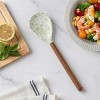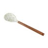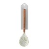 I received some of this brand last year and was happy to find this in store to add an new spoon to use with my new cookware. It's pretty, useful and works well and quick handwash is all it needs to clean. brand lasts a long time and bonus of not scratching my pans.