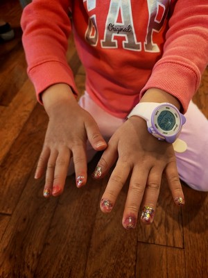 Fun for kids to paint and stamp their nails, but the nail polish never dries! 2 hours later and the nail polish is sliding around in my nail. Good idea, poor performance.