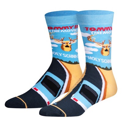 Cool Socks Funny Men's Novelty Crew, Favorite Movies, Assorted Styles. Cool Socks was solely established to dismantle the status quo and to represent all aspects of being yourself. Whether it is the design of our socks, the messages we advocate, or the people we represent, we're always supporting the right to express ourselves and Be You, Be ODD. Knit from a thick, comfortable cotton and elastic/ spandex blend for a breathable, yet stretchy fit. Say goodbye to tired toes and hello to happy feet. These fun novelty socks make great gifts for everyone. These fun novelty accessories make great gifts for dads, friends, coworkers, or anyone else. We take great pride in our unique apparel merchandise featuring everyone's favorite character, logo, movie, TV show, brand, saying, or theme.