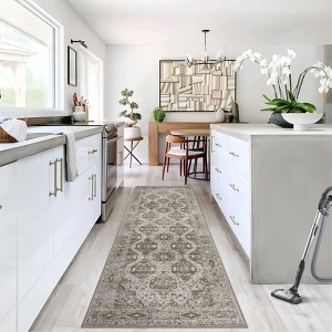 Enhance your home with this vintage-inspired area rug featuring an exquisite irregular medallion and delicate floral print that adds timeless farmhouse charm to any indoor space. Designed with an ultra-thin and lightweight construction, this rug boasts a slim, low-profile build that effortlessly slides under furniture and doorways, making it an excellent choice for rooms where thicker rugs might obstruct movement or door clearance. Crafted for both style and function, the rug combines a classic vintage aesthetic with modern practicality. Its non-slip backing ensures stability on hardwood, tile, or laminate floors, providing added safety in high-traffic areas like living rooms, dining rooms, and bedrooms.