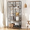Coolmee Industrial Bookshelf, Split Level Vintage Storage Bookcase Tall Standing Metal Frame Open Display Racks for Bedroom, Living Room