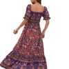 • Design Features:This dress features an off-the-shoulder neckline with short puffed sleeves and a smocked waistband. The all-over floral pattern and tiered maxi skirt offer elegant movement and a timeless look.