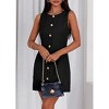 A: The dress features a sleeveless design, button-down front, tailored fit, and a modest knee-length neckline.