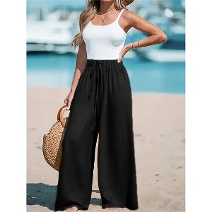 Coolmee Womens Wide Leg Pants High Waisted Pull On Flowy Casual Baggy Drawstring Palazzo Trousers Pants - 1 of 4