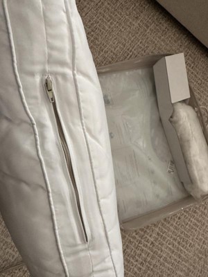 Nice fill and easy to use. Die adjustable pillows have a zipper baffle to pull in or let out and they can be finicky to wash and fail completely if the zipper gets caught. This is a simple to adjust pillow with a small zipper on the side and light to medium firm fill. I appreciate that it’s washer/dryer friendly though I wish it weren’t made with polyester, but it’s workable with cotton percale pillow cases!