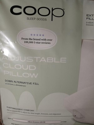At Coop, we are obsessed with helping people sleep better. The Coop Adjustable Cloud Pillow is designed to adapt to you, no matter how you sleep. Filled with our proprietary cloud down-alternative blend, it delivers the soft, airy feel of down with better support and resilience, so it won’t flatten over time. A 2-inch gusset keeps the fill evenly spread, giving you smooth comfort from edge to edge without lumps or shifting. Fully adjustable, you can add or remove fill to create the perfect height and firmness for your sleep position– whether you prefer plush, medium, or firm support. Designed with 2x more airflow than leading down-alternative pillows, it provides breathability and keeps you cool throughout the night. Hypoallergenic, vegan-friendly, and OEKO-TEX Standard 100 certified, the Cloud Pillow is safe, clean, and made with materials you can trust. Serious about sleep, Coop designs adjustable essentials that help you wake up feeling sharp, energized, and ready for the day ahead.